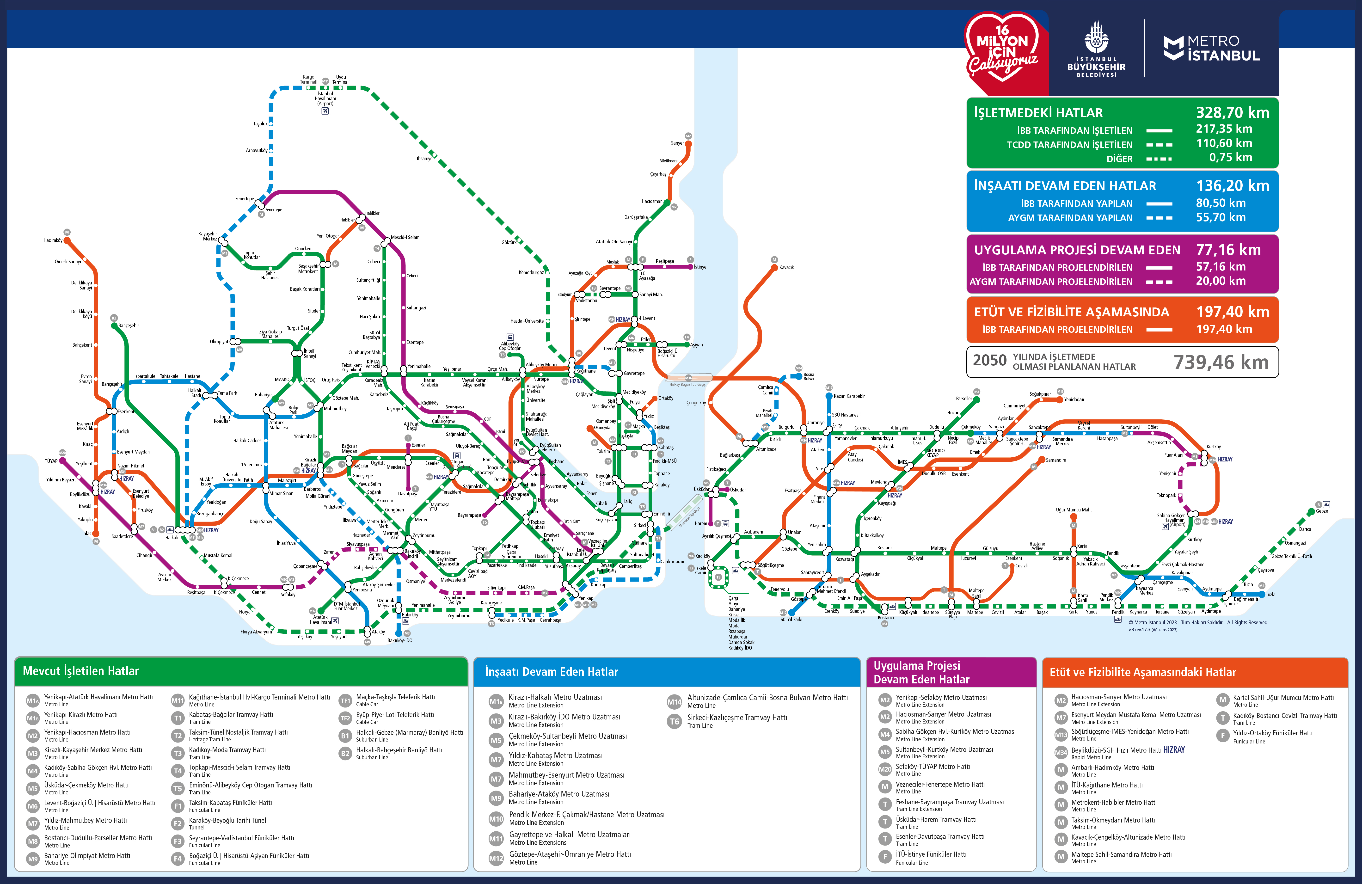 | 15 | Ataköy-Şirinevler | 1+59 km | 17+16 km |